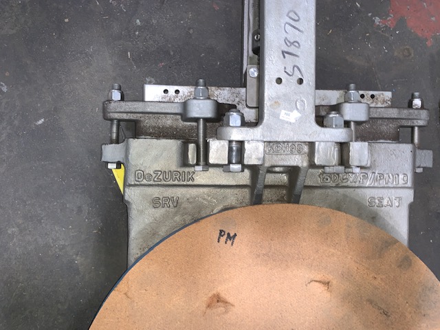 New Storeroom Spare Dezurik 14″ knife gate valve, hand wheel operated, material 316ss