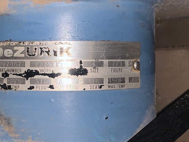 Description: Manufacture: Dezurik Size: 12 inch Body: 316 CWP: 275 Plug:..