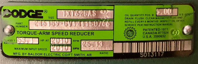 New Storeroom Spare Dodge TXT625AS Torque Arm Speed Reducer