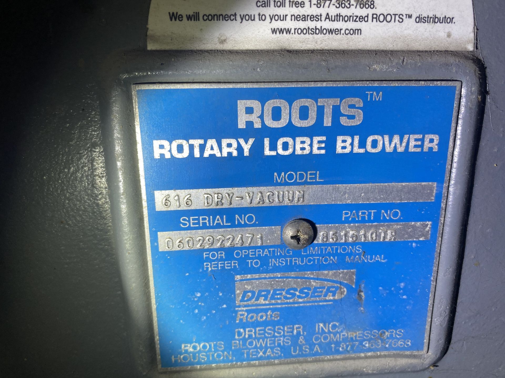 Dresser Roots 616 Dry-Vacuum Rotary Lobe Blower, Storeroom Spare