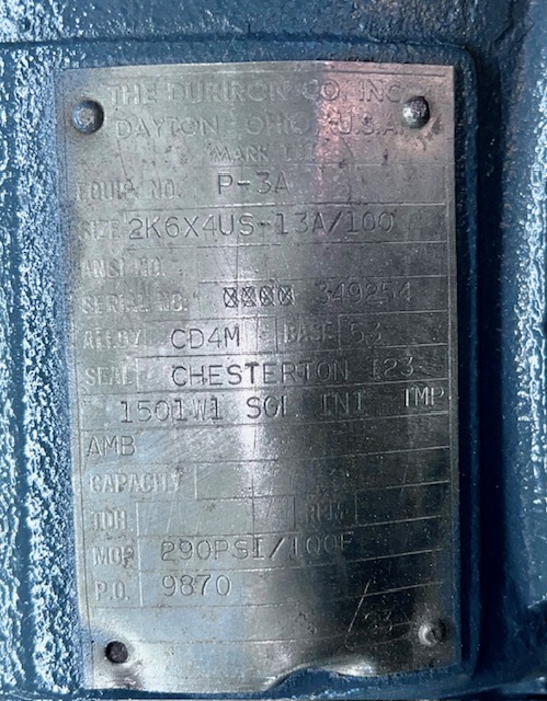 Durco 6×4-13 CD4M Stainless Steel Self-Priming Pump
