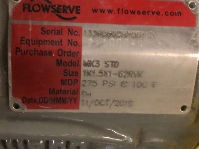 Durco Flowserve 1K1.5×1-62 RVK D4 Material 2 HP New Storeroom Spare Stainless Steel Pump
