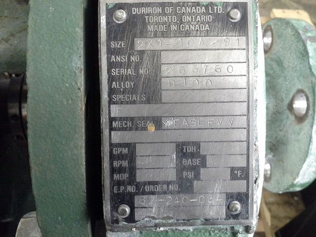 Durco pump size 2x1x10A/9.7, material D100 stainless, used condition