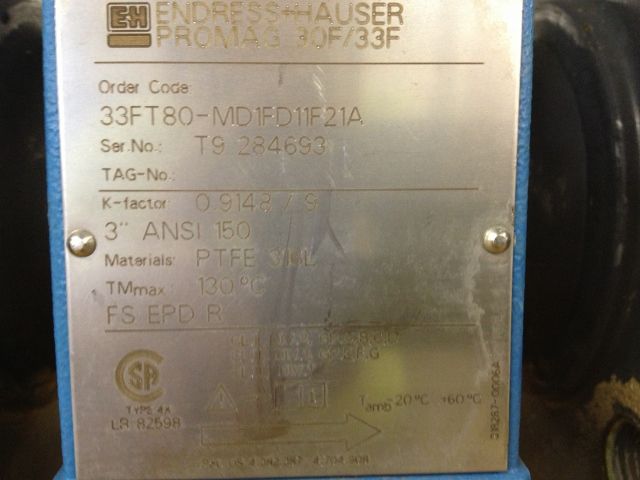 Endress Hausser Promag 3″-150 Magnetic Flowtube