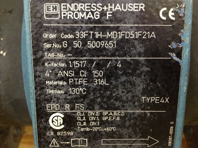 Endress Hausser Promag F 4″-150 Magnetic Flowtube