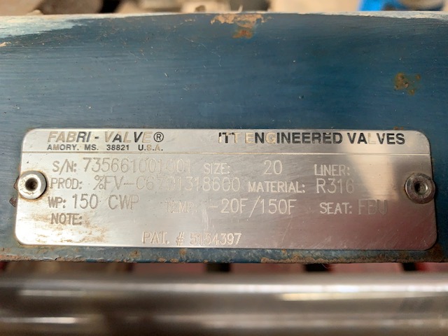 Fabri-Valve 20″-150 Knife Gate Valve with air operated cylinder; seat FBU, max temp 150F