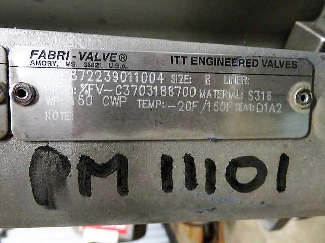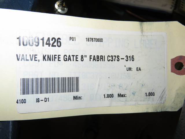 New Surplus Fabri-valve 8″-150 knife gate valve, hand wheel operated, 316ss material