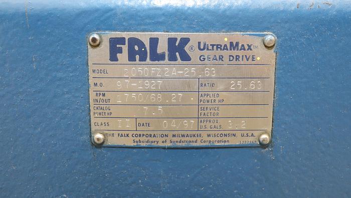 Remanufactured Storeroom Spare Falk 2050FZ2A-25.63 Gear Drive, 25.63/1 Ratio, 1750 Input RPM, 68.27 Output RPM, 7.5 Catalog HP, 3.2 Approx US Gals