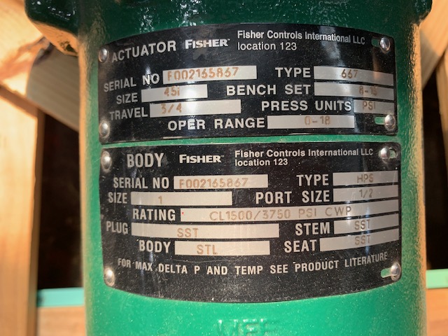 New Storeroom Spare Fisher 1″-1500# HPS, actuator 667/45, DVC6200 positioner