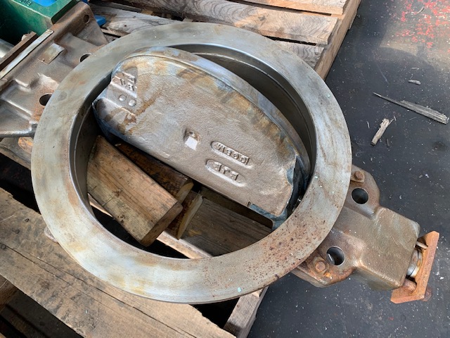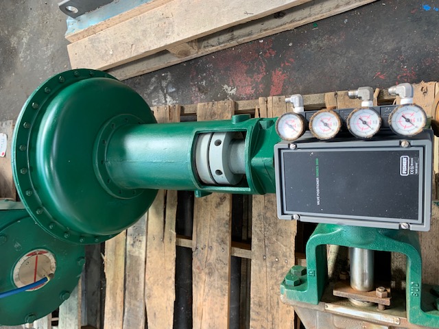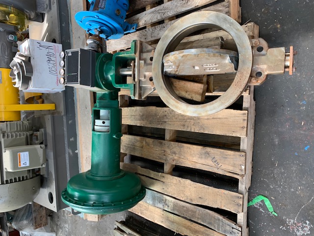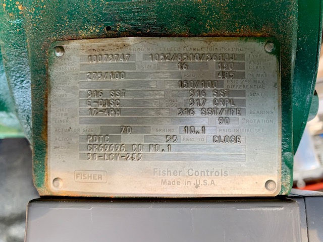 Fisher 16″-150# type 8510 butterfly valve with pneumatic actuator 1052/70 and 3610J positioner; material CF8M stainless.