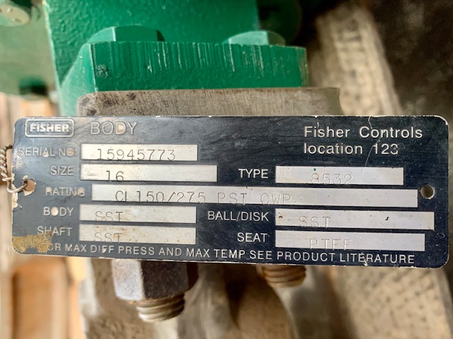 Fisher 16″-150# type 8532 butterfly valve, actuator 1052/70, 3620 positioner