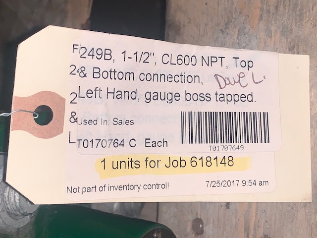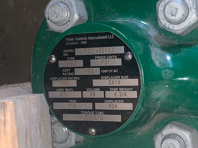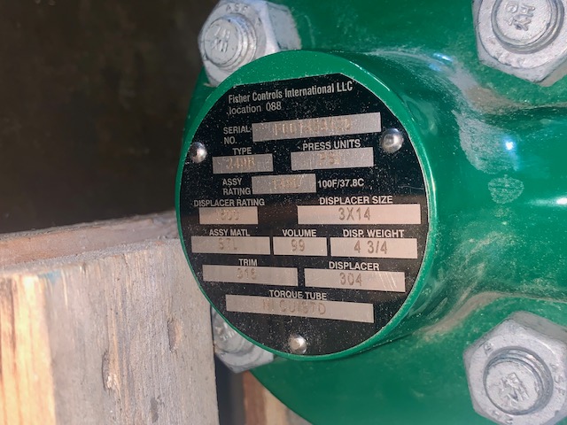 New Storeroom Spare Fisher Controls level-trol displacer controller type 249B class 600# size 1.5″