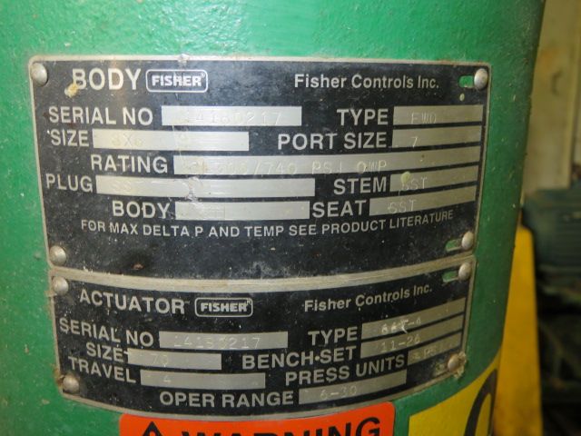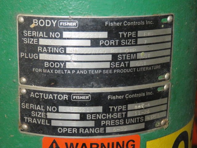 Fisher 6×8 class 300 type EWD Globe Control valve, complete with actuator 667-4/70 and positioner 3582i