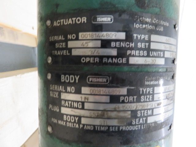 Fisher type HPAS size 1.5″-1500, material WCB/316ss, actuator 667/45