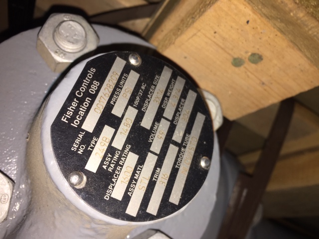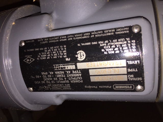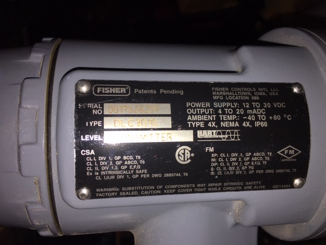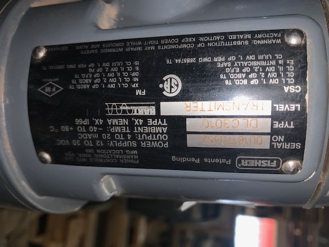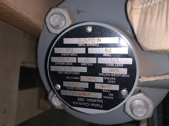 Unused Condition Fisher Controls level-trol displacer controller type 249B with Fisher Fieldvue type DLC3010 digital control.