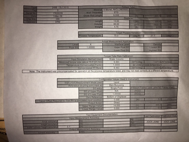 Fisher DLC3010-249 Level Controller and Transmitter Sensor