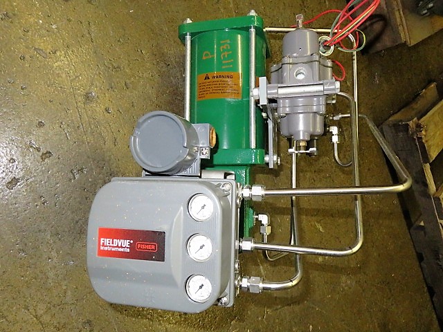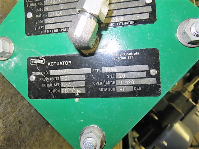 Fisher pneumatic actuator type 1066 size 20; press units PSI; operation range 0-120;action PDTO; rotation 90 degrees. Attached to DVC6030 electropneumatic positioner (4-20mA)