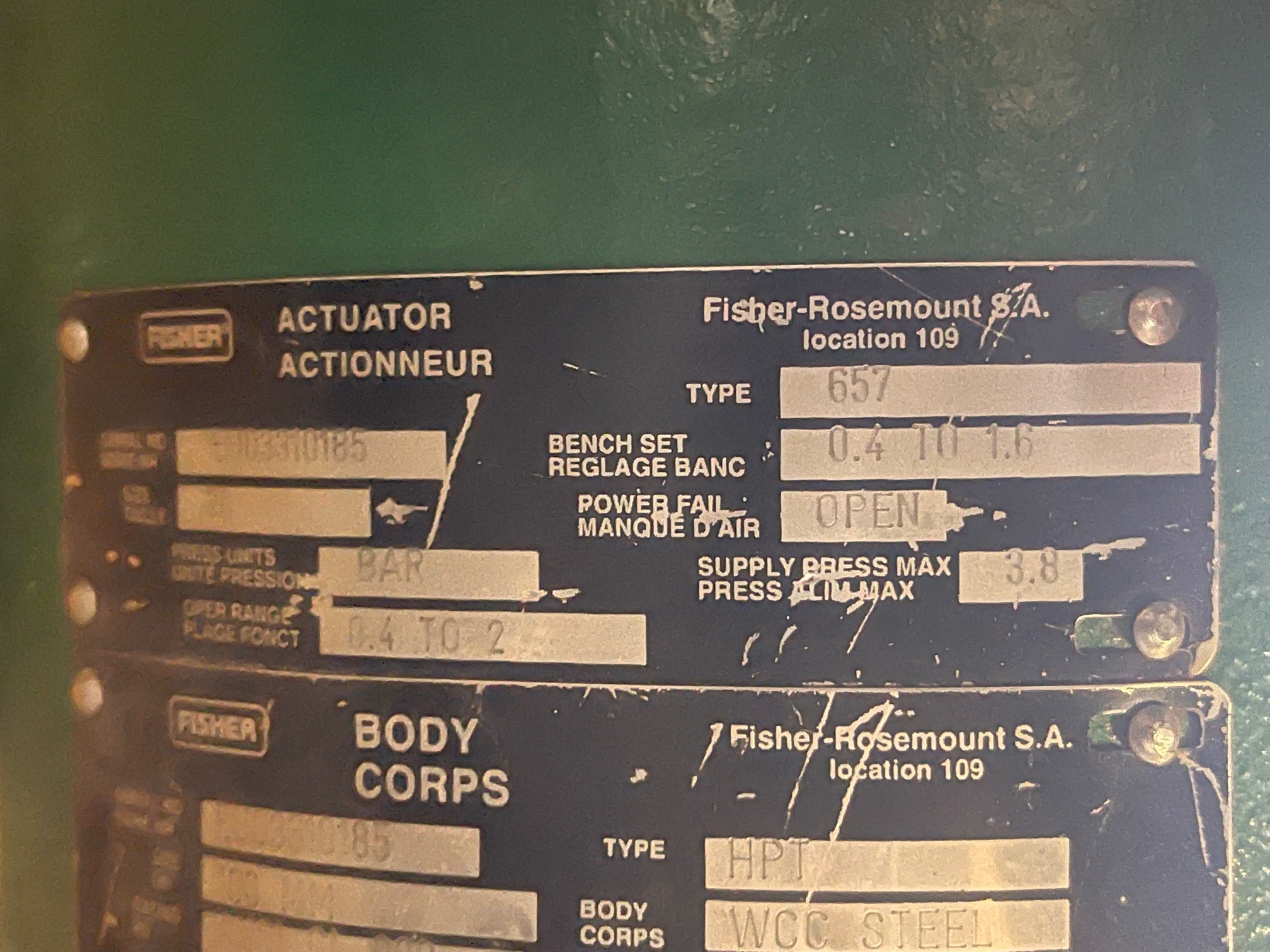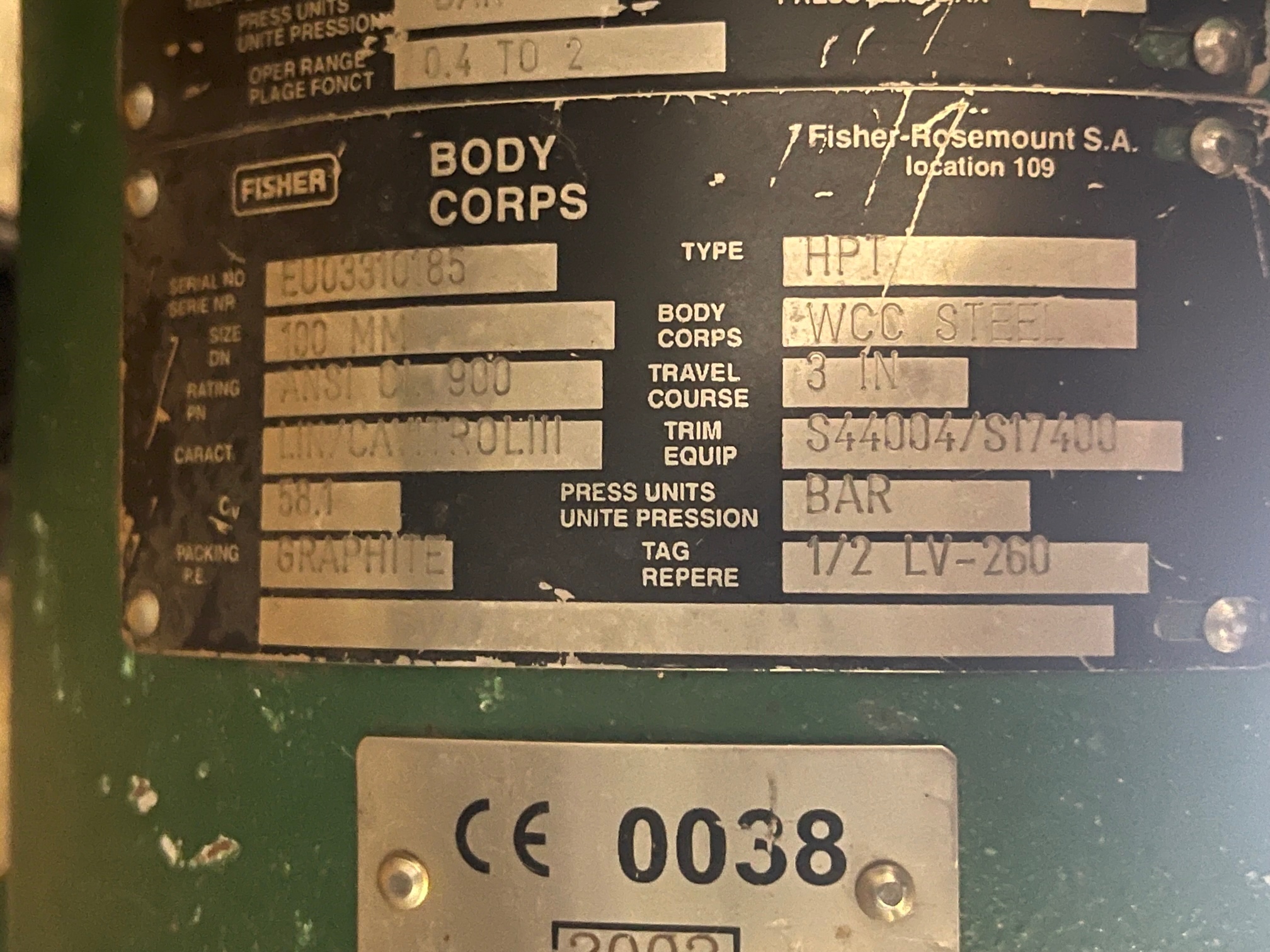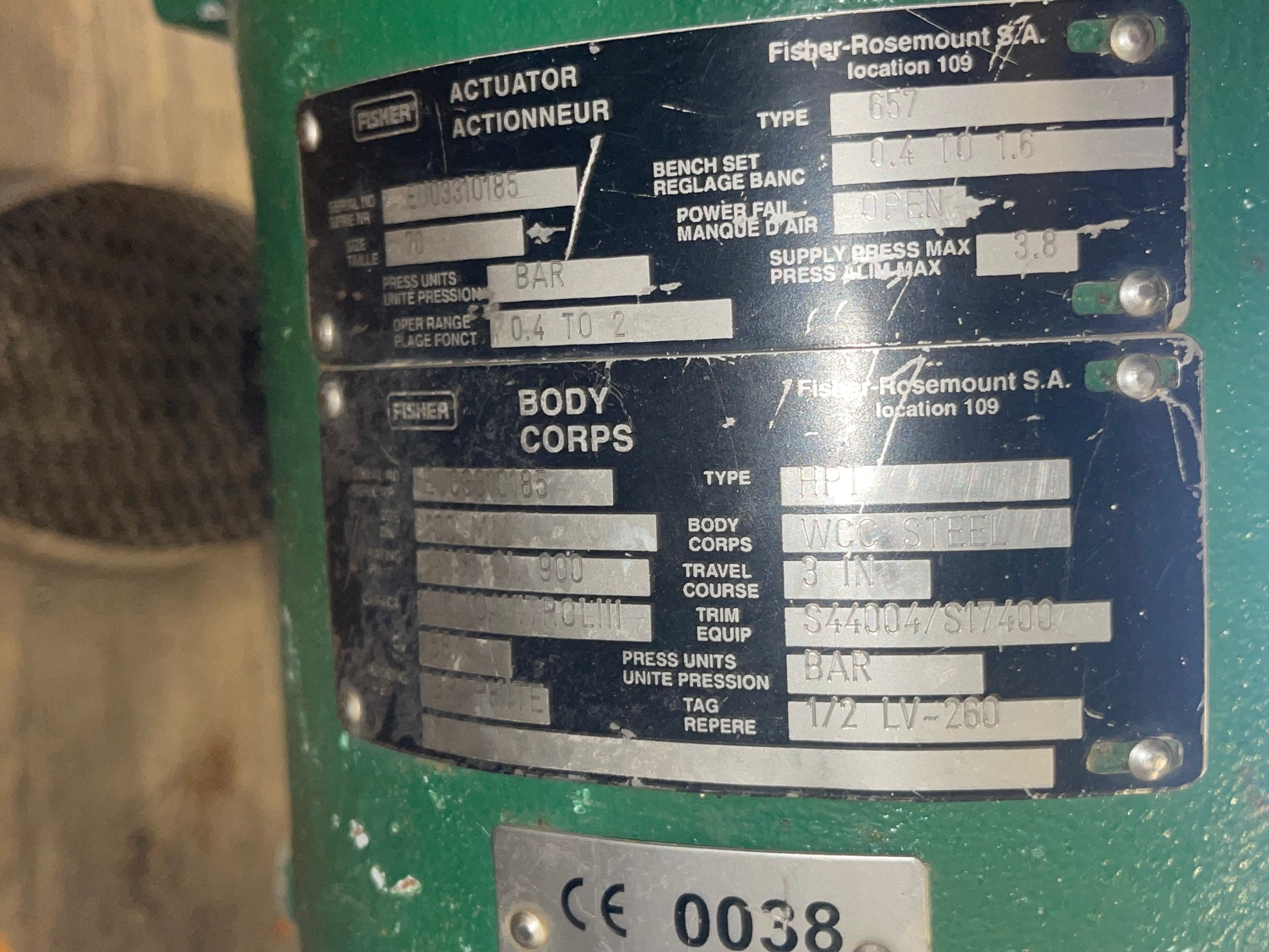 Fisher 4″-900# HPT steam valve with 657/70 pneumatic actuator; material WCB/316SS