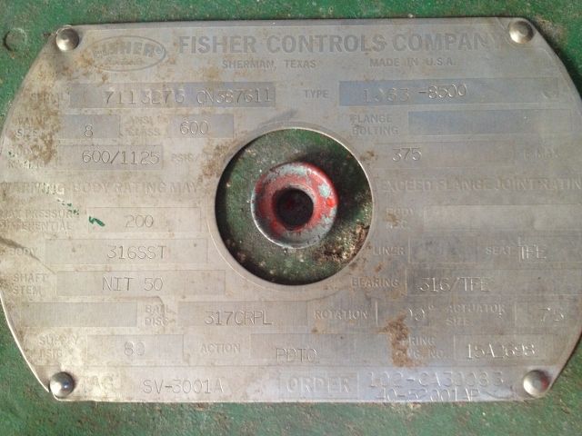 Fisher 8″-150 butterfly valve with pneumatic actuator and positioner
