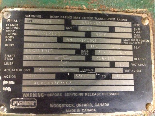 Fisher butterfly valve size 6″, material 317ss, with actuator 1052 and positioner 3610