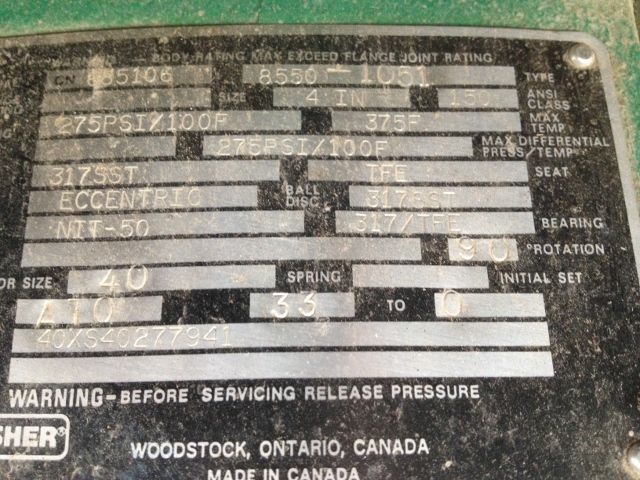 Fisher 4″-150 butterfly valve with pneumatic actuator and positioner