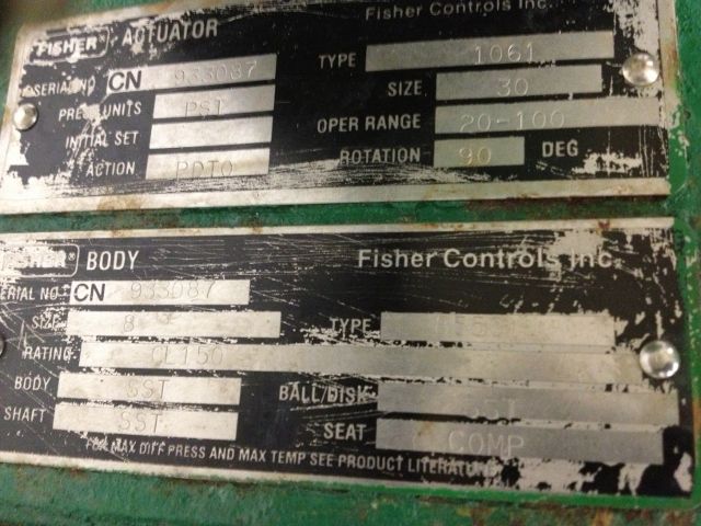 Fisher butterfly valve size 8″, material 317ss, with actuator 1061 size 30 and positioner 3610