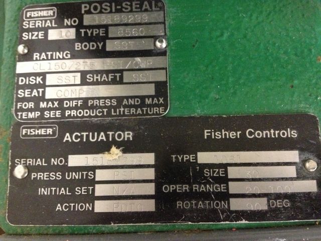 Fisher butterfly valve size 10″, material 316ss, with actuator 1061 size 30 and positioner 3610