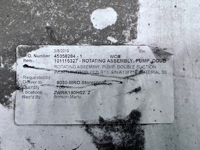 New Storeroom Spare Flowserve 8LR12 / 8LR14 Rotating Assy, Material Stainless Steel