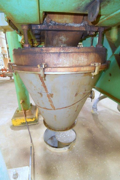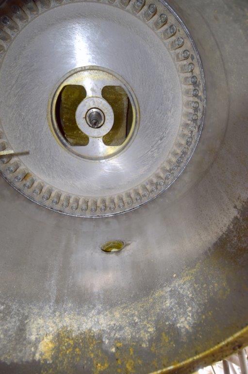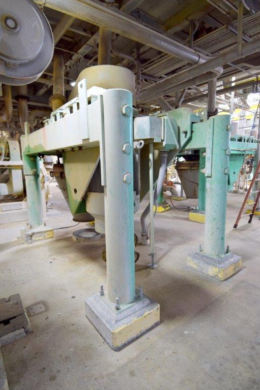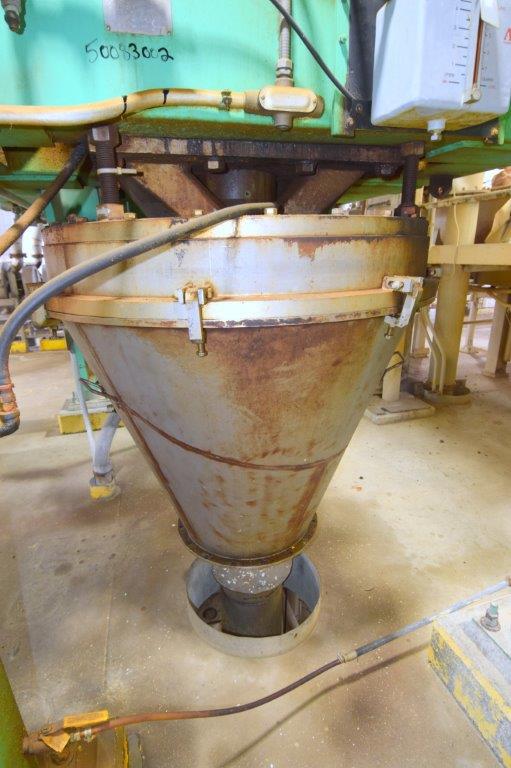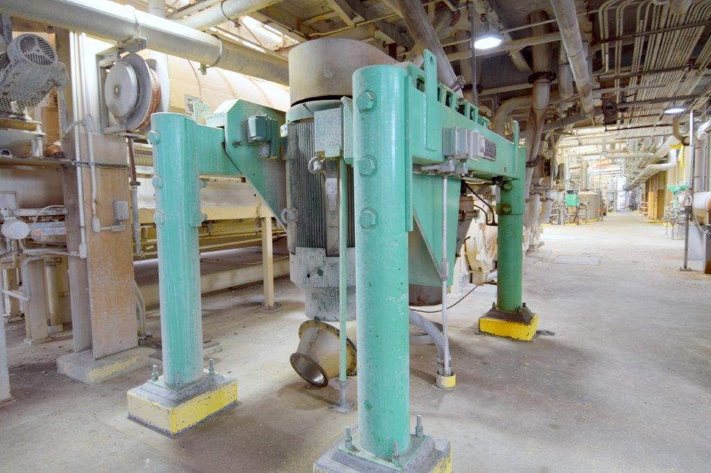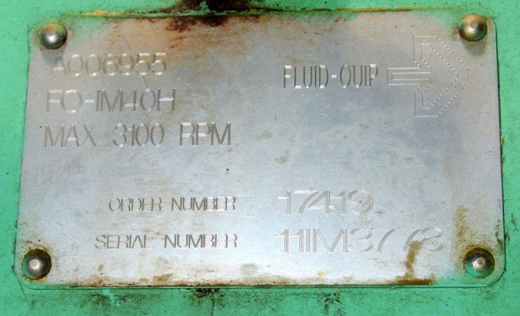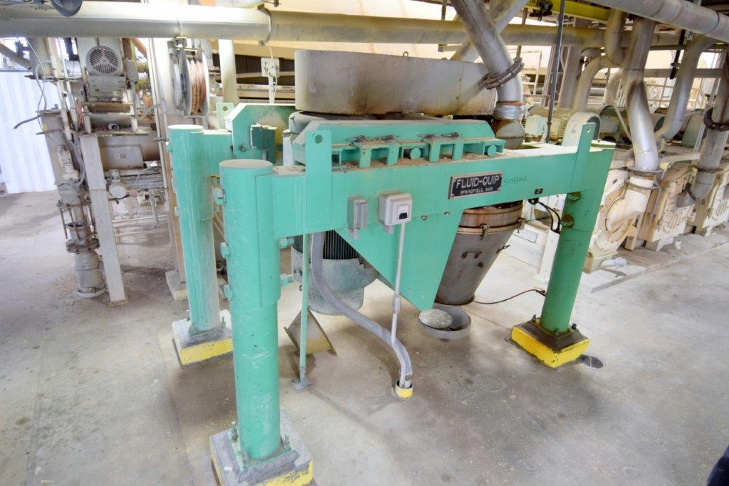 Used- Fluid Quip Horizontal Rotor Impact Mill, Model FQ-IM40H, Stainless Steel. Approximate 48″ diameter rotor, dual top infeed, bottom discharge with removable hopper, rpm 3100 maximum. Driven by a 600hp, 3/60/2300-4160 volt, 1785 rpm motor. Mounted on (4) carbon steel legs. Serial# 11IM3778.
