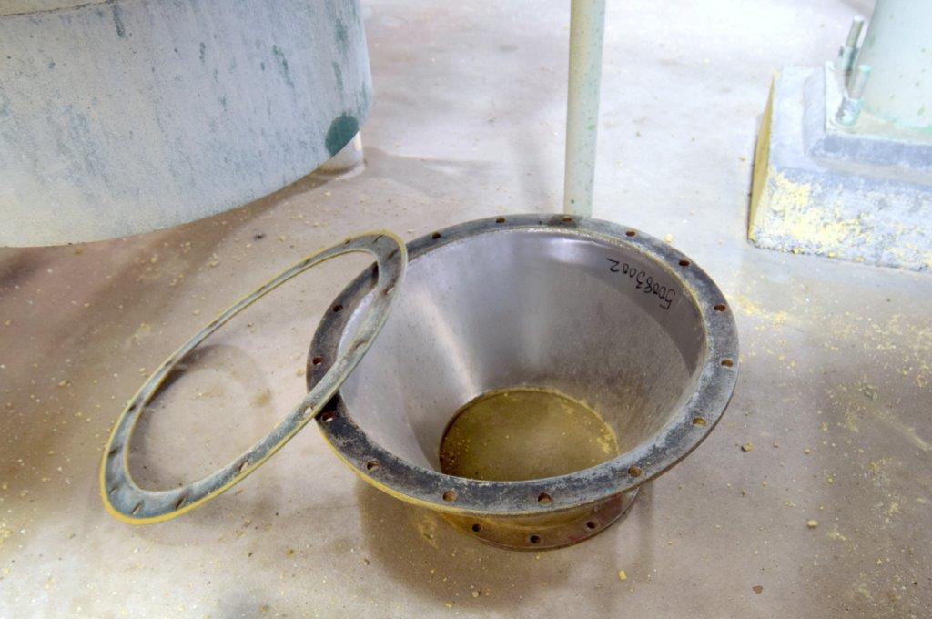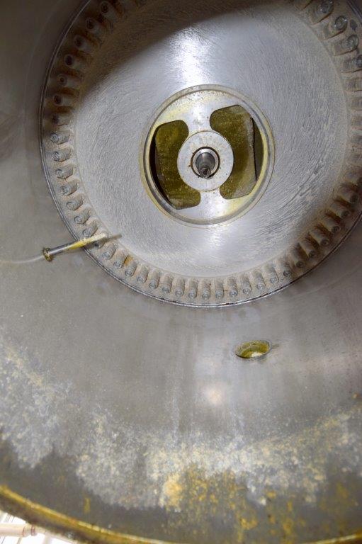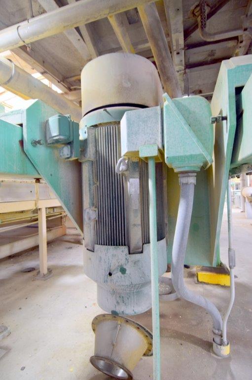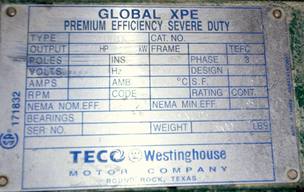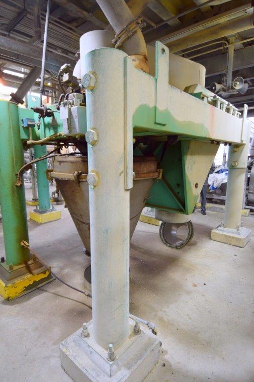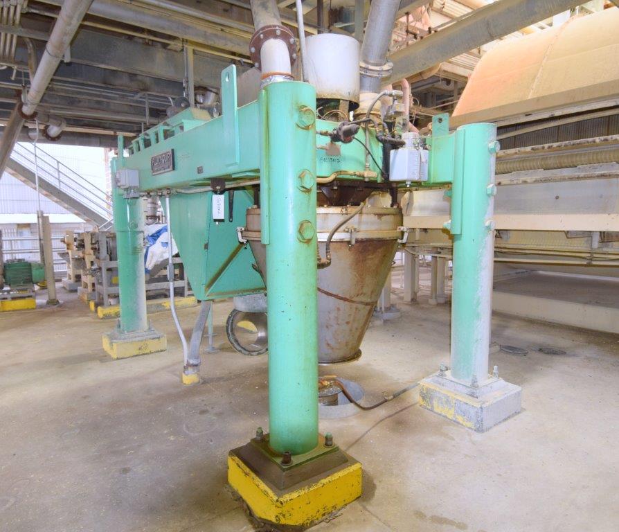 Used- Fluid Quip Horizontal Rotor Impact Mill, Model FQ-IM40H, Stainless Steel. Approximate 48″ diameter rotor, dual top infeed, bottom discharge with removable hopper, rpm 3100 maximum. Driven by a 600hp, 3/60/2300-4160 volt, 1785 rpm motor. Mounted on (4) carbon steel legs. Serial# 11IM3778.