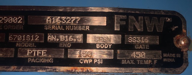 New Storeroom Spare FNW 12″ Knifegate valve, manual, material 316ss