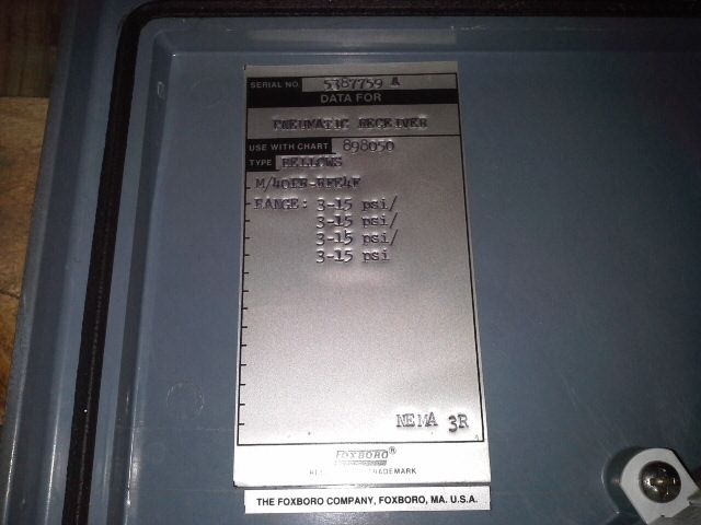 Foxboro chart recorder date for pneumatic receiver, use with chart 898050, type bellows, range 3-15 psi