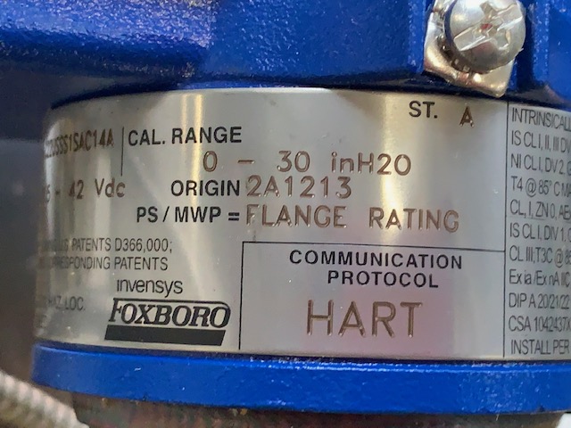 Unused Condition Foxboro pressure transmitter, cal. 0-30″ H2O