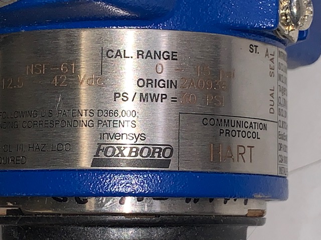 Unused Condition Foxboro pressure transmitter, cal. 0-15 psi