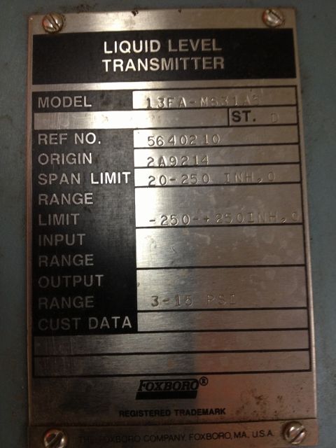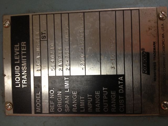 Foxboro Liquid Level Transmitter Model 13FA-MS31A5