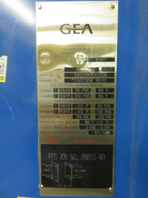 GEA certified by APV Products, Plate Heat Exchanger model 2WP-A1-2, year 2009, s/n 10917