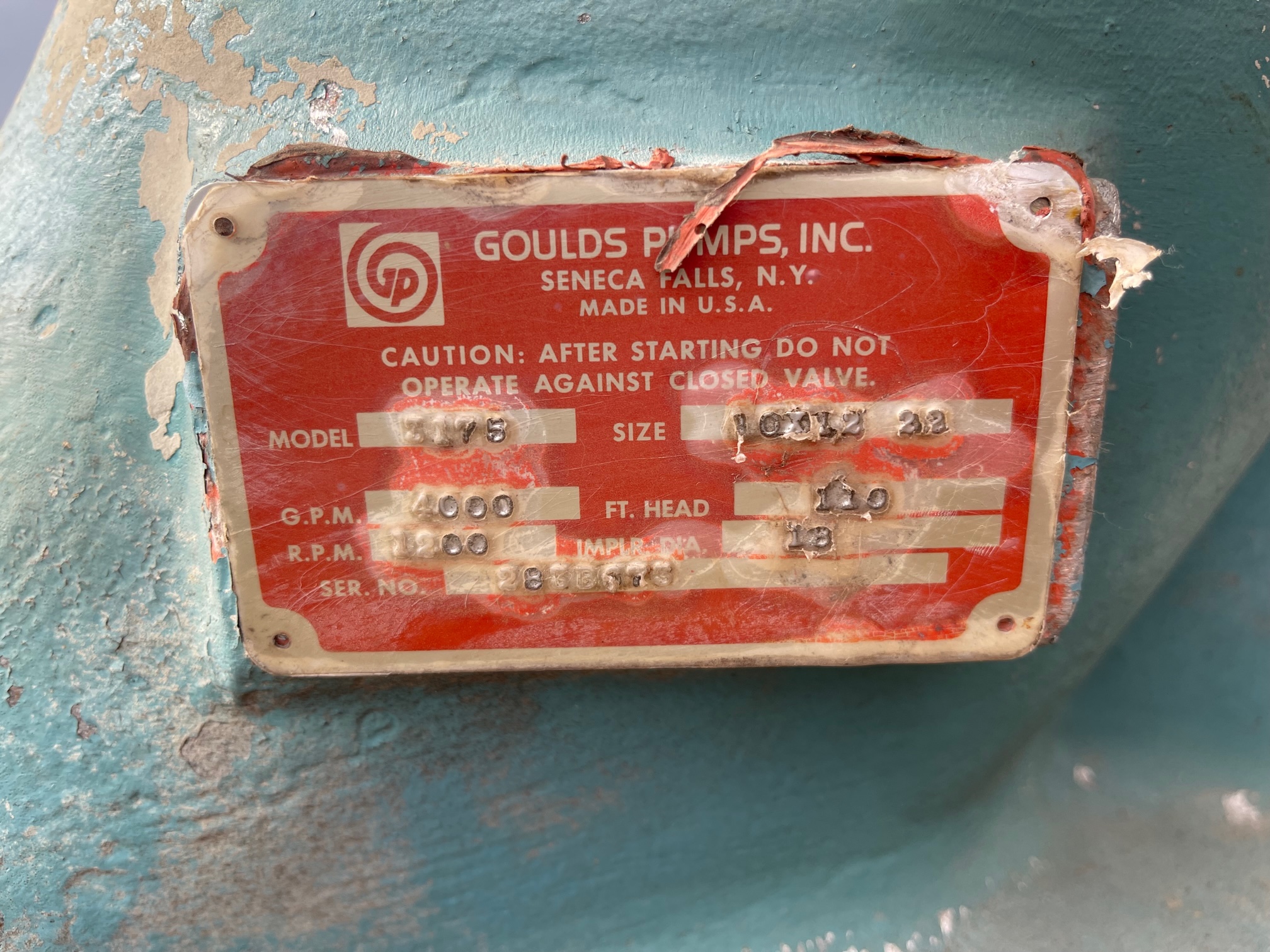 Goulds 3175 10x12x22, material 316ss, 4000 gpm, 110 ft HD, 1200 rpm, 18″ impeller diameter