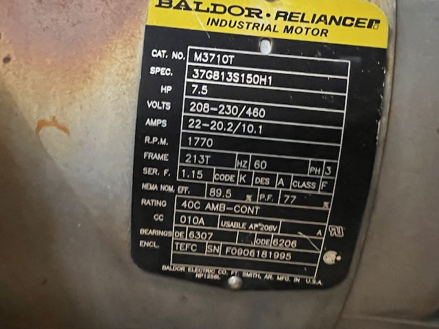 - Baldor AC Motor, 7.5hp, 208-230/460v, 1770rpm
