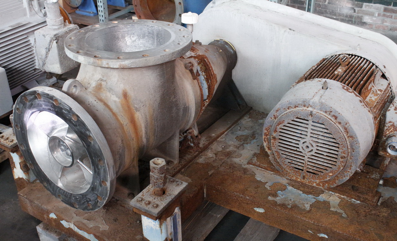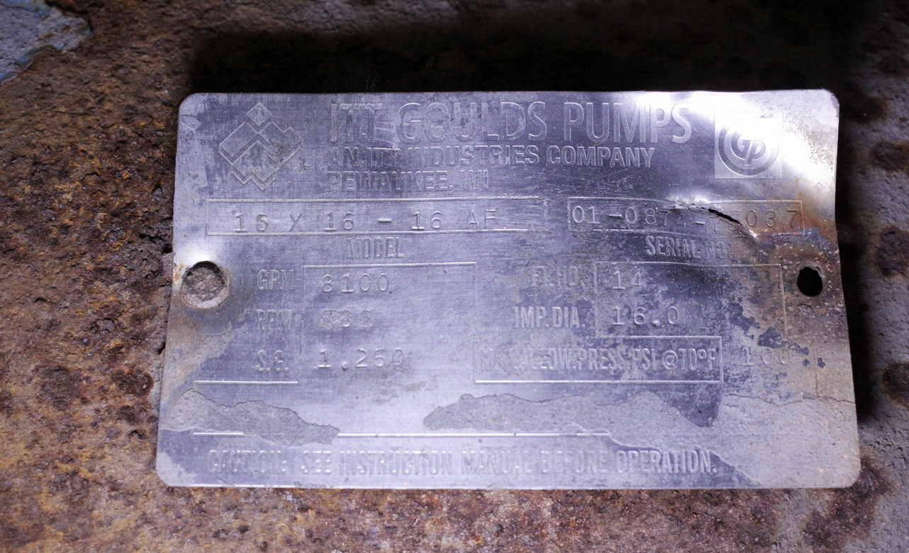 Goulds Axial Flow Pump, 16x16x16, 8100 Gpm, 14 Ft/Head, 800 Rpm, Cd4mcun Stainless Steel Casing, 4-Vane Cd4mcun Stainless Steel Impeller, 16″ Impeller Diameter, With 75 Hp Siemens Motor, 1780 Rpm, 460 Volts, 365t Frame, Belt Driven, With Base