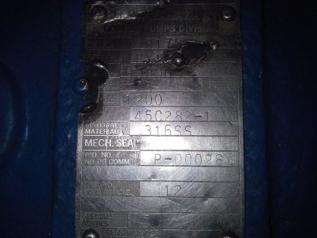 Description: Manufacture: Goulds Model: 3175 Size: 4x6-18 Material: 316ssGoulds model 3175 Stock Pump size 4×6-14 , material 316ss