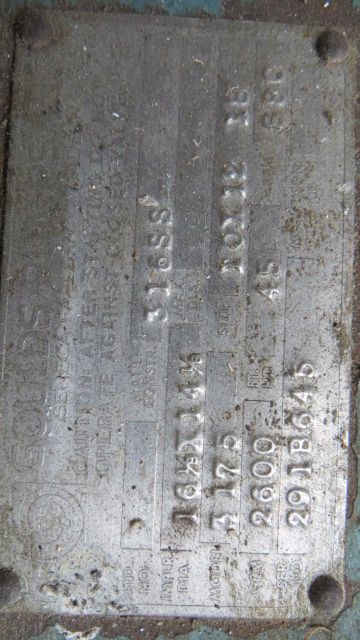 Goulds 3175, 10x12x18″ Pump, Stainless Steel Casing, Stainless Steel Stuffing Box, Stainless Steel Suction Side Plate, 4 Vane Stainless Steel Impeller, 16″ Impeller Diameter, Packing