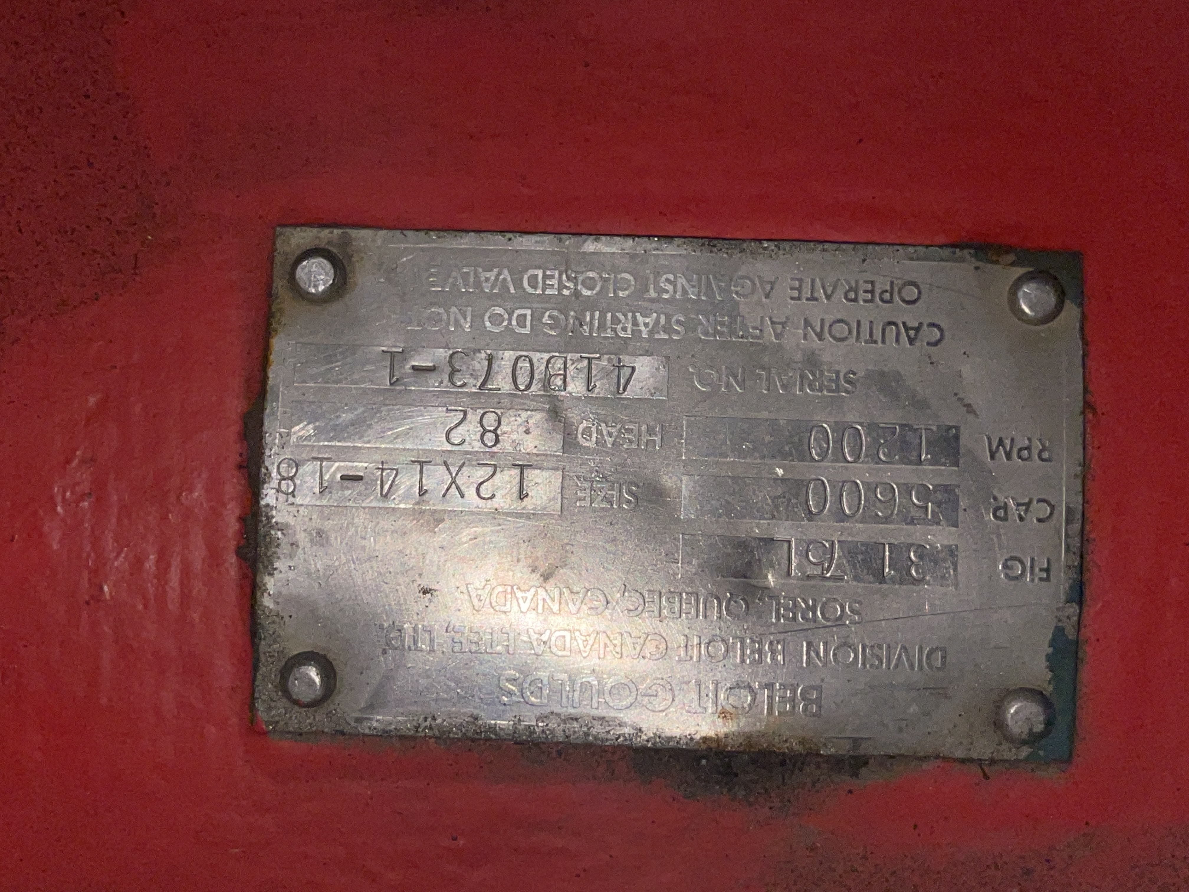 Goulds Stock pump model 3175 size 12x14x18, Stainless Steel Impeller, Stainless Steel Casing, Stainless Steel Stuffing Box, Stainless Steel Suction Side Plate