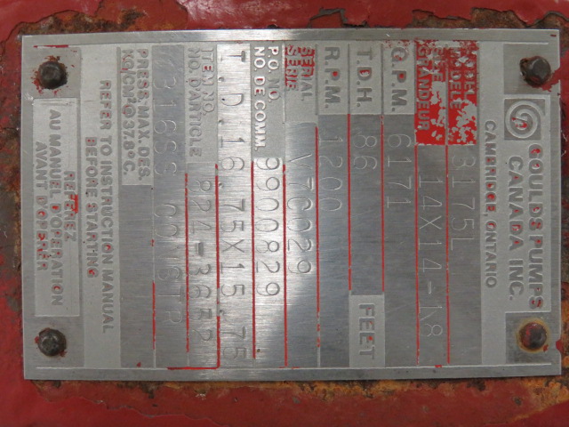 Goulds Stock pump model 3175 size 14x14x18, Stainless Steel Impeller, Stainless Steel Casing, Stainless Steel Stuffing Box, Stainless Steel Suction Side Plate