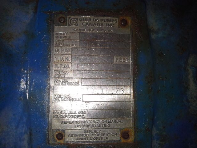 Description: Manufacture: Goulds Model: 3175 Size: 8x8-12 Material: CI/SS 100 hp..Goulds Pump Model 3175 Size 14×18-22