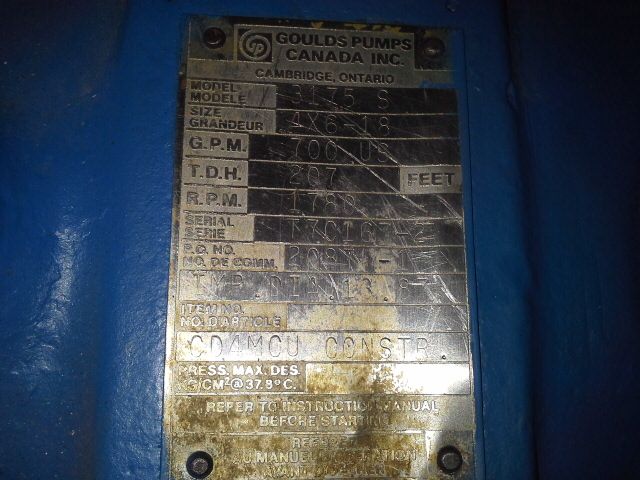 Goulds pump model 3175 size 4x6x18, material 316ss