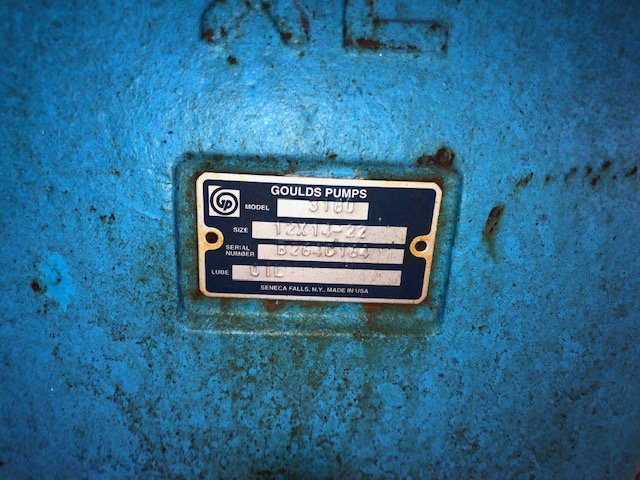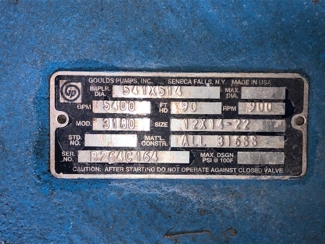 Goulds 3180 12x14x22 stainless steel pump, 541×514 mm Impeller Diameter, 5400 gpm, 90 ft HD, 900 rpm; S/N B264C164