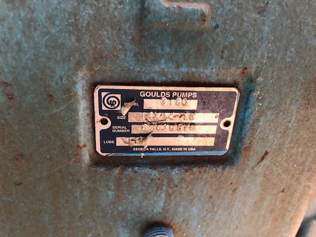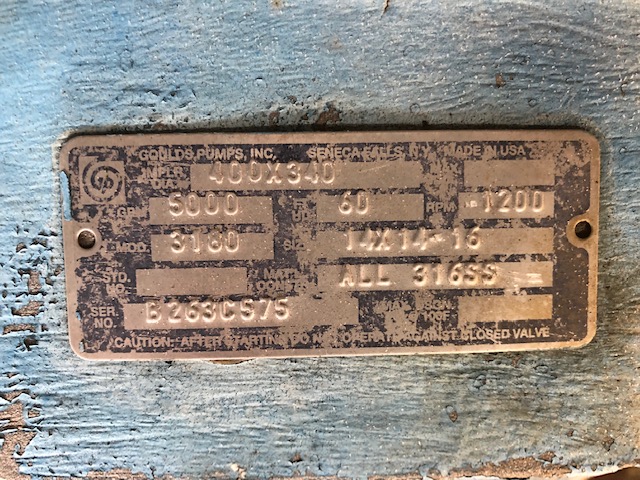 Goulds 3180 14x14x16 stainless steel pump, 400×340 mm Impeller Diameter, 5000 gpm,60 ft HD, 1200 rpm; S/N B263C575