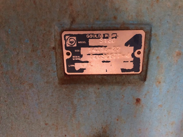 Goulds 3180 14x16x22 stainless steel pump, 553×502 mm Impeller Diameter, 12250 gpm, 58 ft HD, 900 rpm; S/N B263C577-4