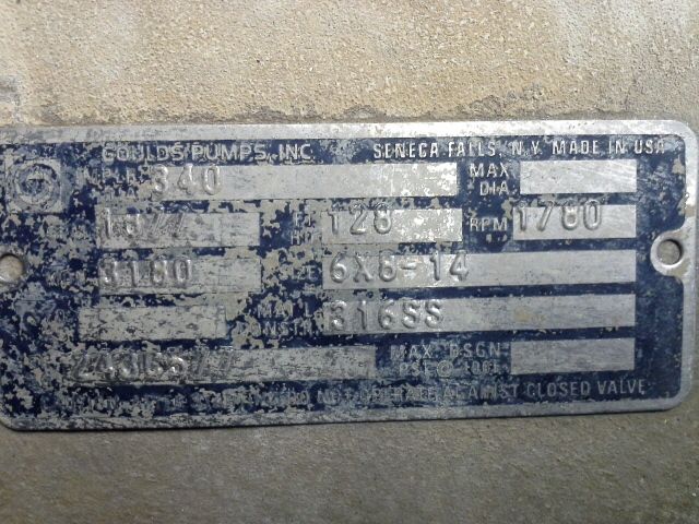 Goulds 3180 6x8x14, 316ss, 1877gpm, 128ftHD, 1780 rpm, 340mm impeller