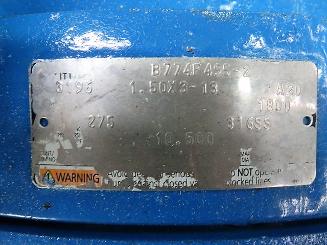 Goulds 3196MTi 1.5×3-13 material 316ss, 10.5″ impeller diameter